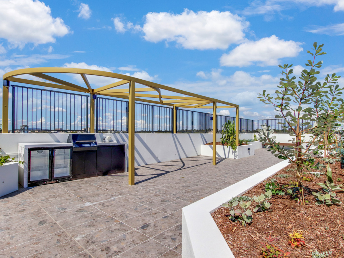 The rooftop retreat crowns the building with a resort-style pool, landscaped gardens and BBQ areas — perfect for unwinding or entertaining with friends.
