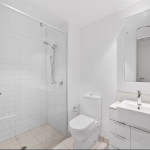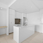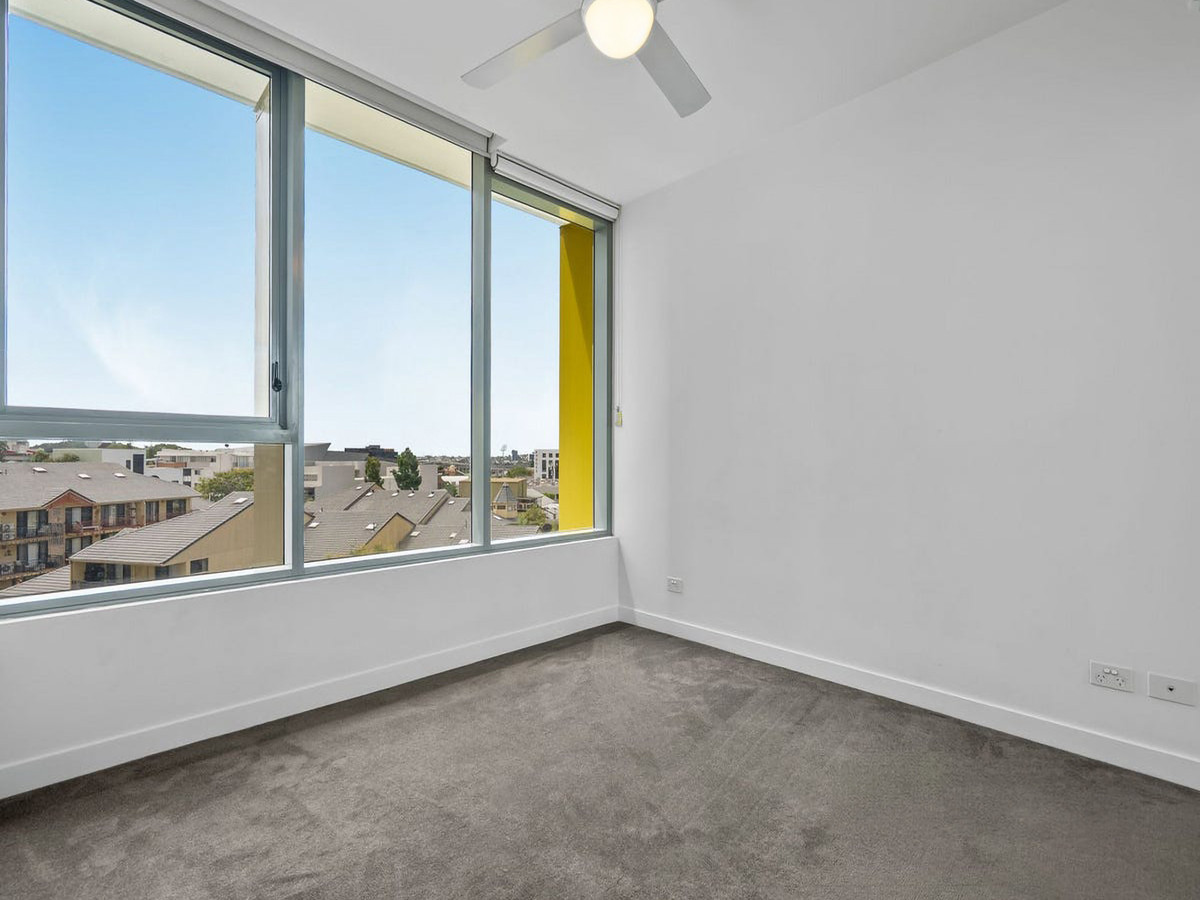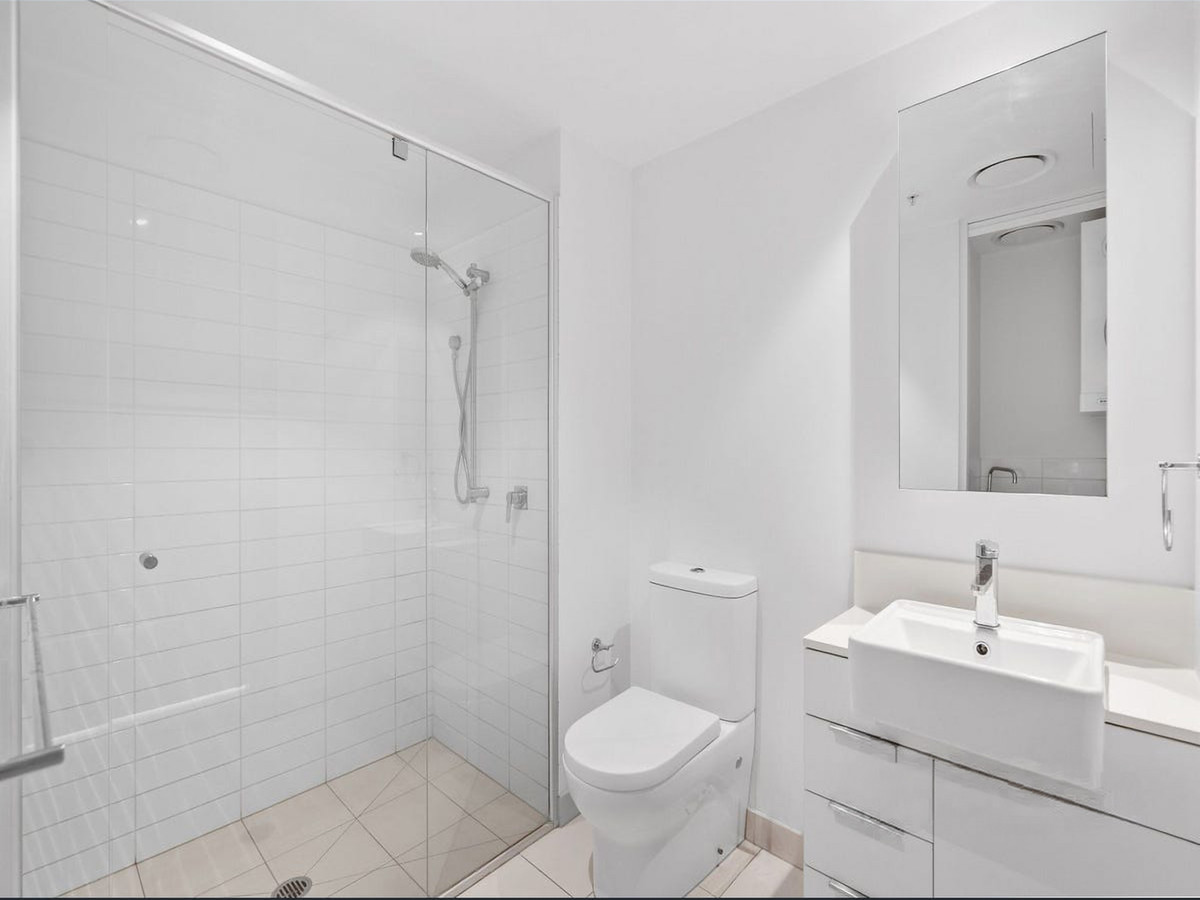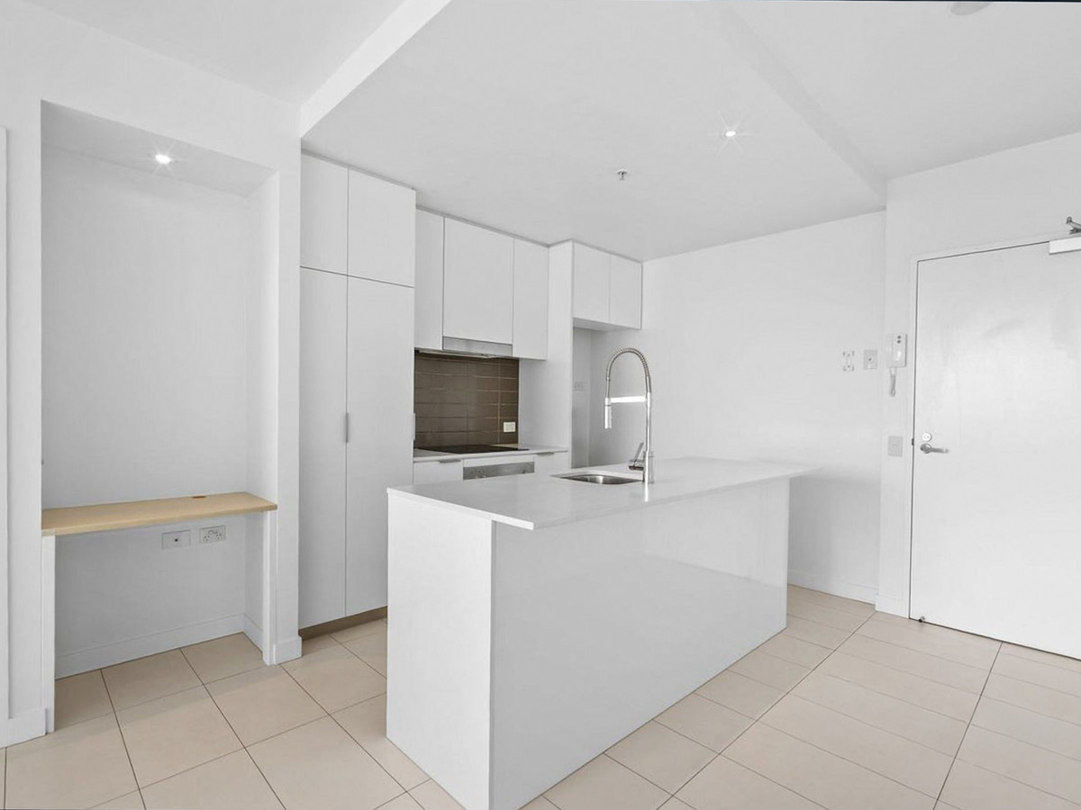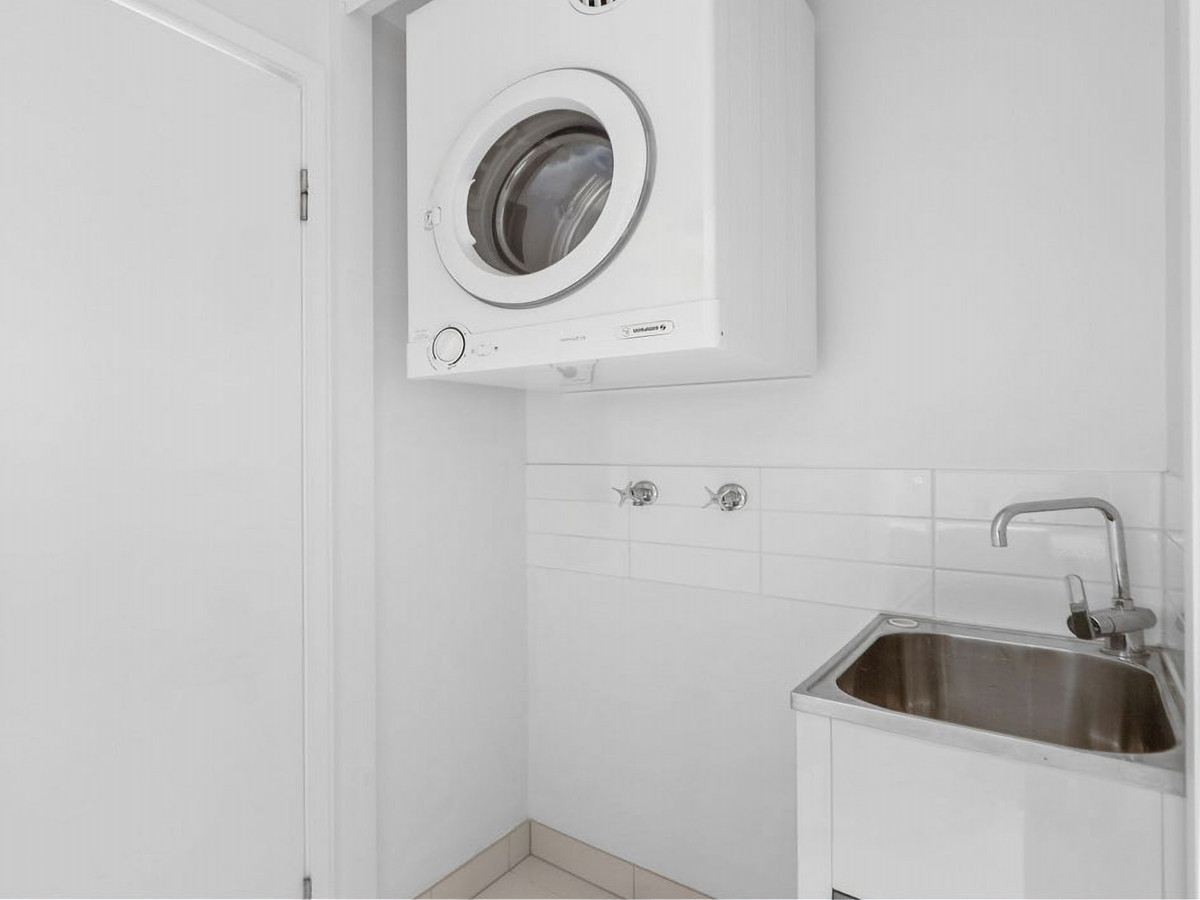 Inside, the apartment features a modern open-plan kitchen and living area with a dedicated study nook, perfect for working from home. The light-filled bedroom includes a built-in mirrored wardrobe, while air conditioning and ceiling fans provide year-round comfort.